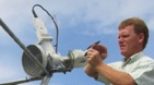 Prodelin 1.2m antenna Antenna Mount Antenna mounts come in a variety of styles for different applications in different locations. The most common is a pole mount, where the pole on which the antenna is mounted is set into a substantial concrete block in the ground. (Also known as a penetrating mount). On flat roof surfaces, where penetration would compromise the building, a Non Penetrating Roof Mount (NPRM) is used, as shown above. This relies on balast to keep the dish from moving. Custom mounts can also be constructed to fix an antenna to walls, balconies and the like. The mount required is determined, based on a site survey, which can often be conducted by the customer.