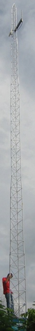Towers In order to provide a line-of-sightbetween the two ends of a wireless link, it is often necessary to erect a tower. These can often be fabricated locally at relatively low cost. Alternatively, DRASTIC can supply them. We like to use freestanding aluminum towers . These hinge at the base, and can easily be "walked" up and down to maintain equipment fitted to them. They are also much lighter than steel for shipping. Like the VSAT and power equipment, Wireless equipment has to be properly lightning protected and earthed. A Site survey form is available here for wireless networking connections. The information from this form allows DRASTIC to calculate required tower heights and define other equipment needs.